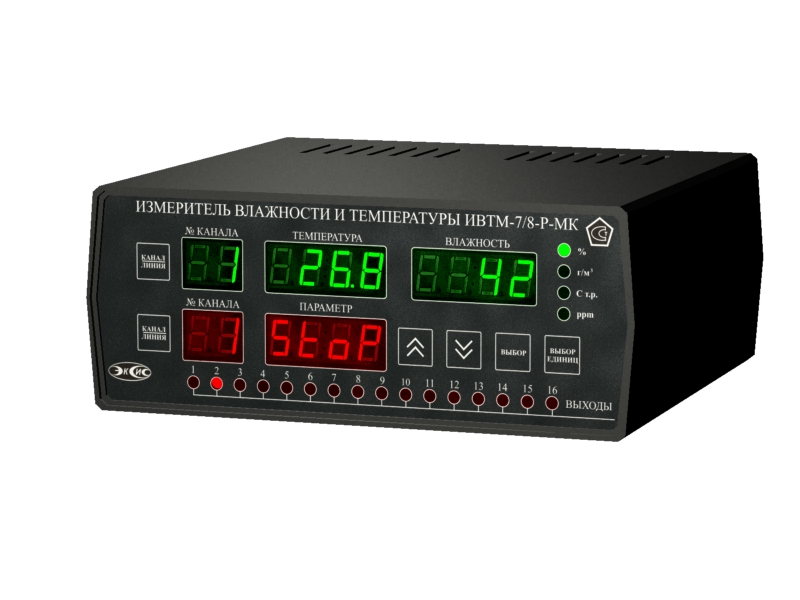Прибор ИВТМ-7 предназначен для непрерывного или периодического измерения и регулирования температуры и относительной влажности по восьми каналам. Отличительные особенности: наличие USB интерфейса связи с компьютером, наличие шестнадцати встроенных устройств коммутации (реле) для управления внешними исполнительными устройствами, наличие шестнадцати аналоговых выходов с возможностью управления по ним, наличие в одном измерительном блоке прибора восьми встроенных устройств коммутации (реле) и восьми аналоговых выходов, отображение параметров регулирования на передней панели блока измерения и индикации, объём памяти статистики до 30 тысяч точек записи, наличие нескольких режимов управления: логическое, по гистерезису, ПИД-управление.