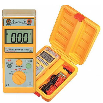 Цифровой измеритель сопротивления изоляции 2751 IN: Измерение сопротивления изоляции и сопротивления цепи; Фиксированные значения постоянного напряжения для измерения сопротивления изоляции: 250 В; 500 В; 1000 В; Измерение переменного напряжения до 600 В; Измерение сопротивления изоляции при напряжении, создающем ток в нагрузке 1 мА; Функция удержания показаний, таймер режимов тестирования (3 ... 5 мин); Автоматический разряд накопительного конденсатора; Измерение сопротивления низкоомной цепи током 200 мА; Звуковой прозвон цепи; Индикация наличия опасного напряжения в тестируемой цепи; Цифровой ЖК индикатор (68 х 34 мм); Батарейное питание, автооключение; Индикация разряда источников питания; Компактность, надёжность; Масса 600 гр.