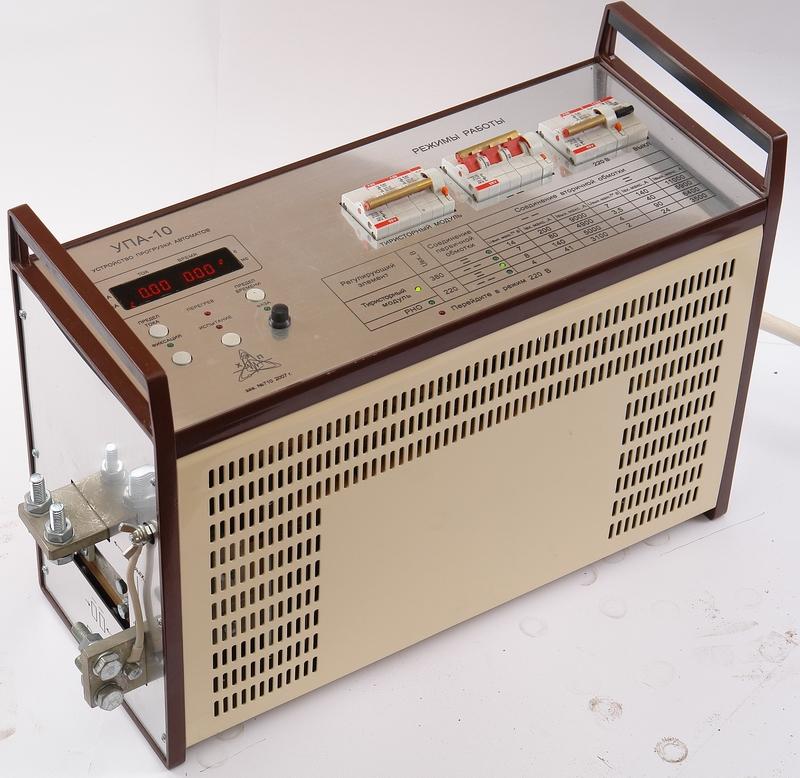 УПА-10 предназначено для проверки работоспособности и снятия ампер-секундных характеристик автоматов защиты, работающих в цепях переменного тока, с регистрацией величин тока и времени срабатывания автомата. УПА-10 является переносным оборудованием, выполненным в виде переносного блока.
